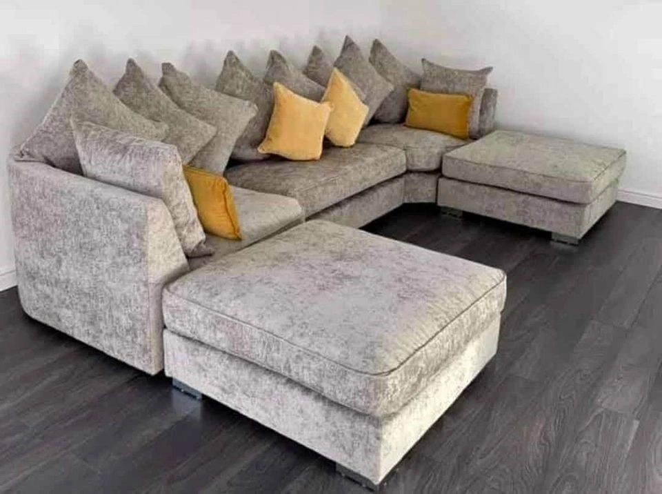 Luxury bespoke U shape sofa, upholstered in the finest luxury fabrics, and hand manufactured in the UK, using high quality graded foam