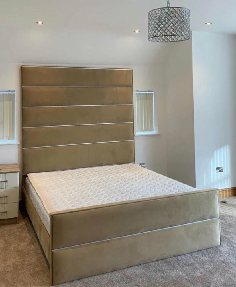 contrast pipping in your choice of colour/ picture is displayed in mink french velvet with ivory piping