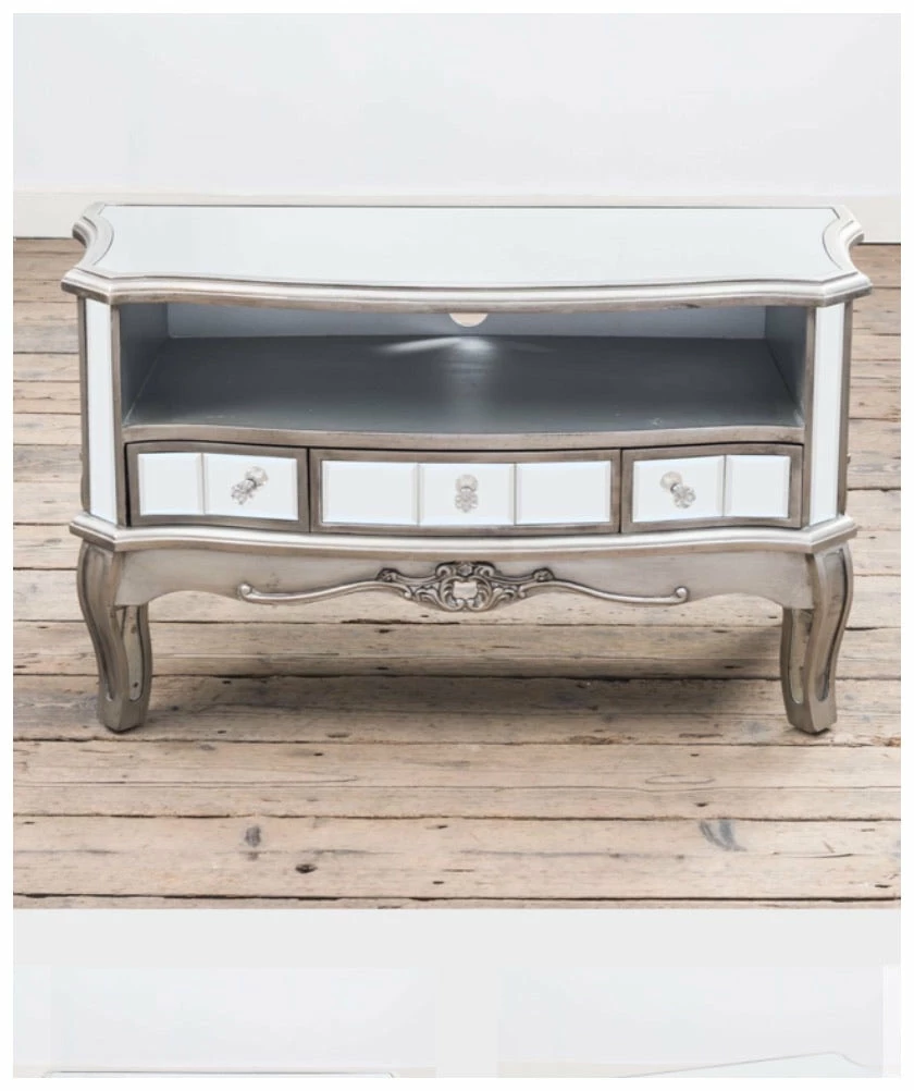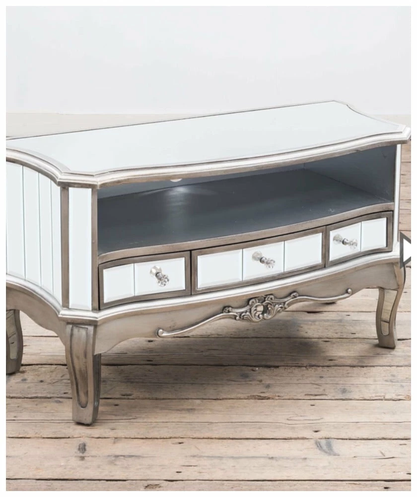 Anna French Silver Paint Mirrored Three Drawer tv cabinet