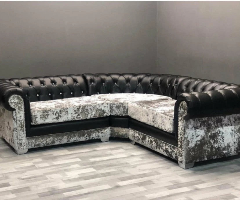 Stunning chesterfield buttoned sofa with black leather and lustro fabric