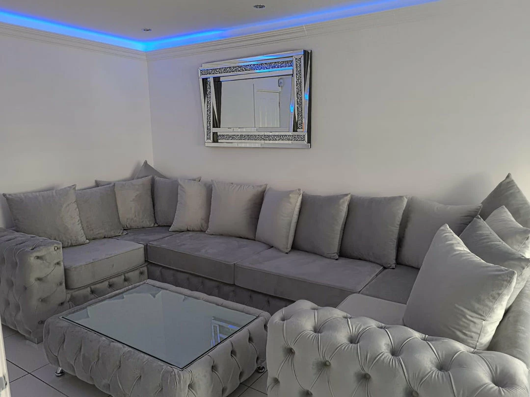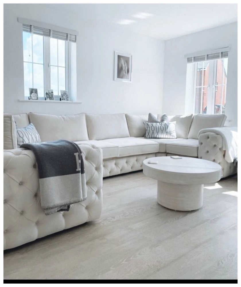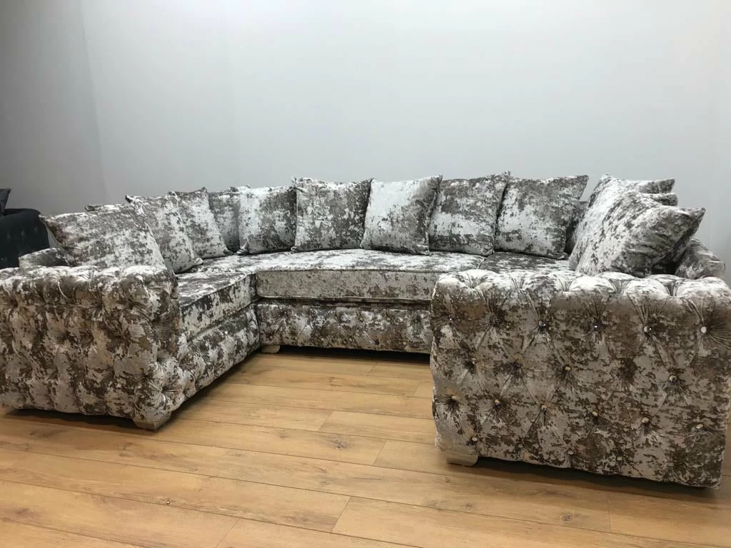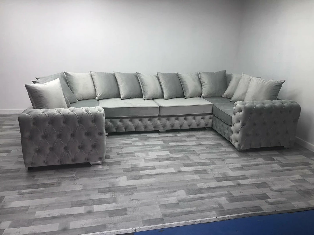 Luxury bespoke U shape sofa, upholstered in the finest luxury fabrics, and hand manufactured in the UK, using high quality graded foam