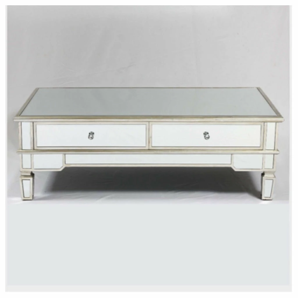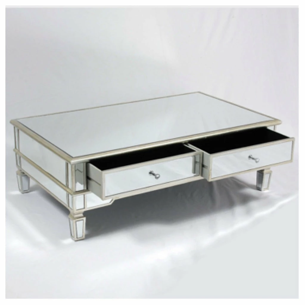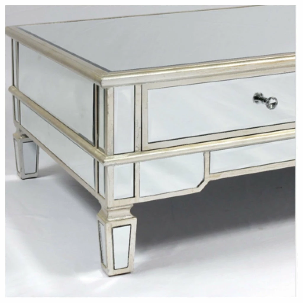 The finish is in silver gilt which is hand applied leaf. This creates a beautiful iridescent patina with a distressed finish. The silver leaf is hand finish therefore is it natural to expect and appreciate slight imperfections as a feature of this furniture.