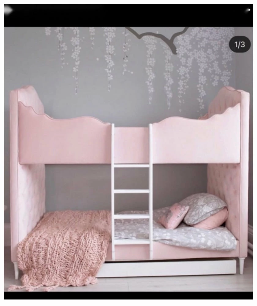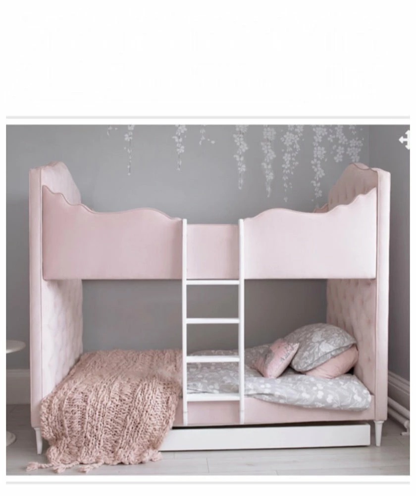 Available in vintage soft pink stone and ivory hand tufted cushioning our Valencia upholstered bunk bed offers a luxury and comfort never seen before in a child’s bedroom.