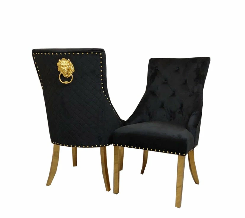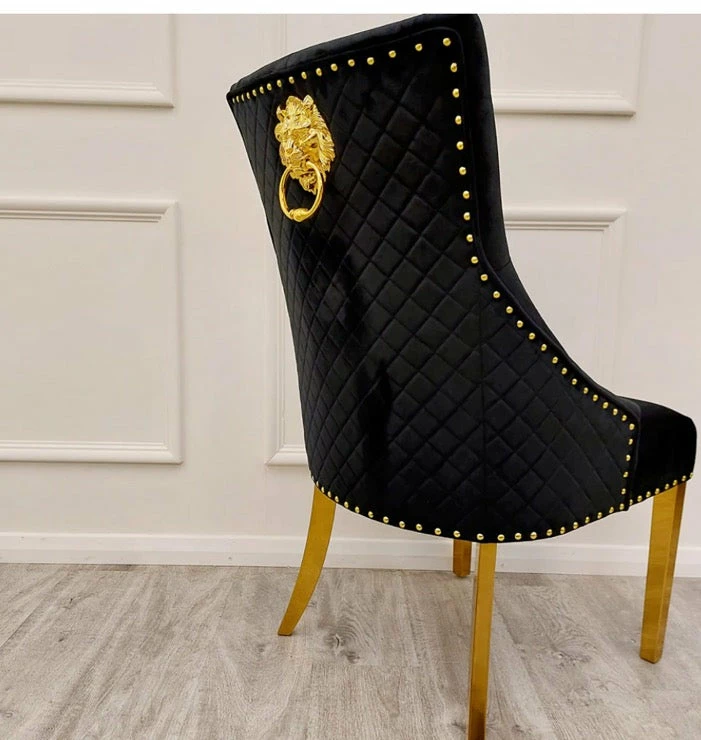 House Of Bling Furniture Boutique Valencia Lion Knock Plush Velvet Black Chair Set Dining Chairs
