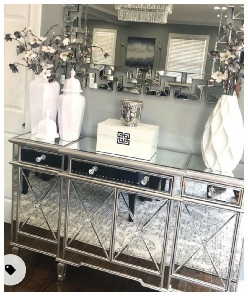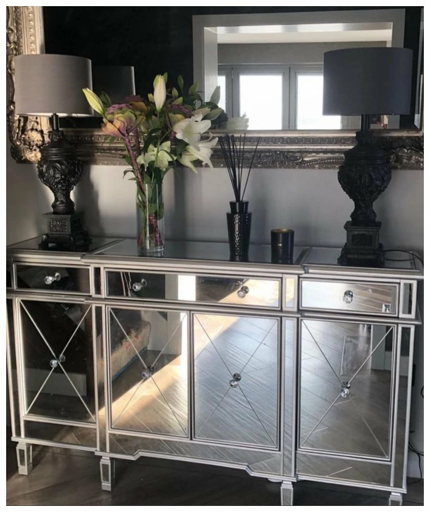 House Of Bling Furniture Boutique Valencia Silver Antique Large Sideboard Cabinet Valencia Range