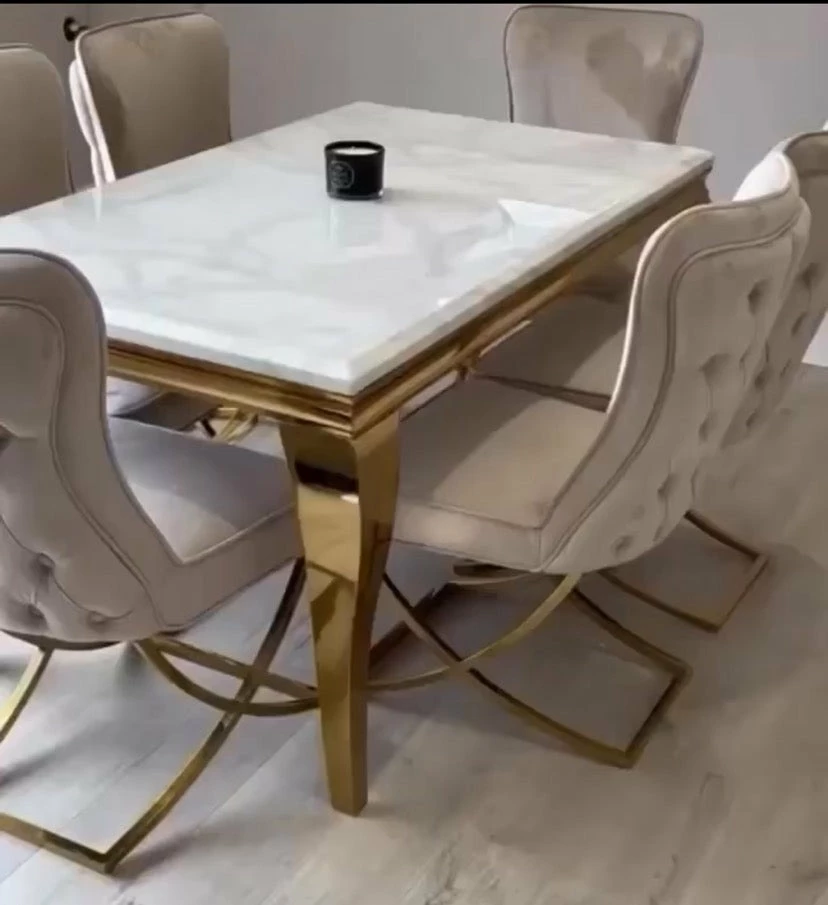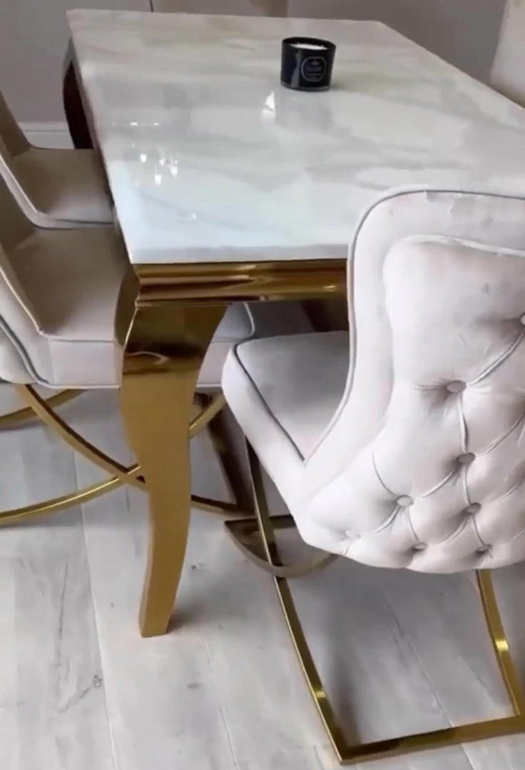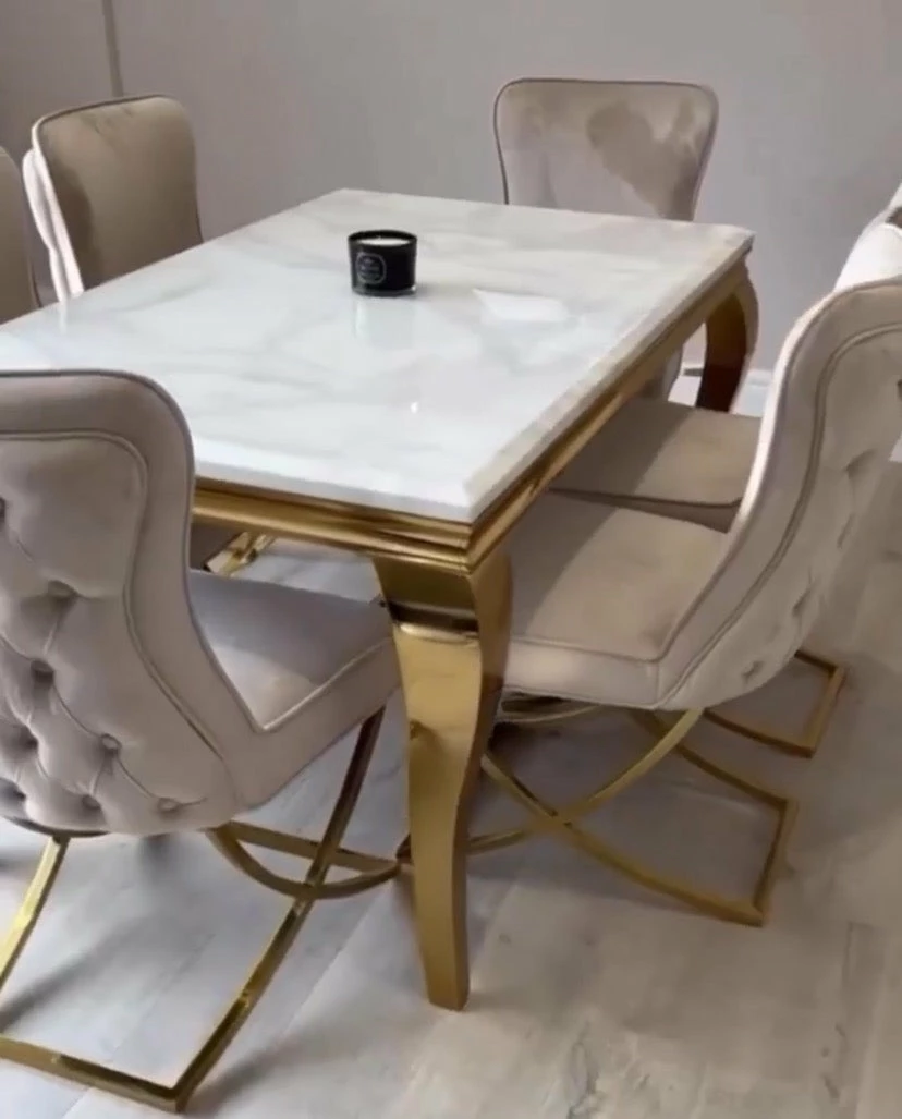 Luxury Cambridge gold base table with white marble top, please note table is also available in marble, stone and grey or black glass