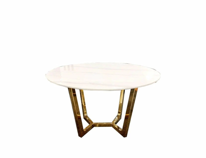 Lucien Gold 1.2 Round Dining Table with Polar White Sintered Stone Top