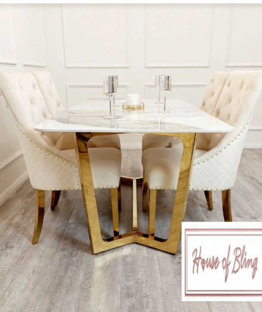 House Of Bling Furniture Dining Tables Zara Marble Dining Table With Chair Option