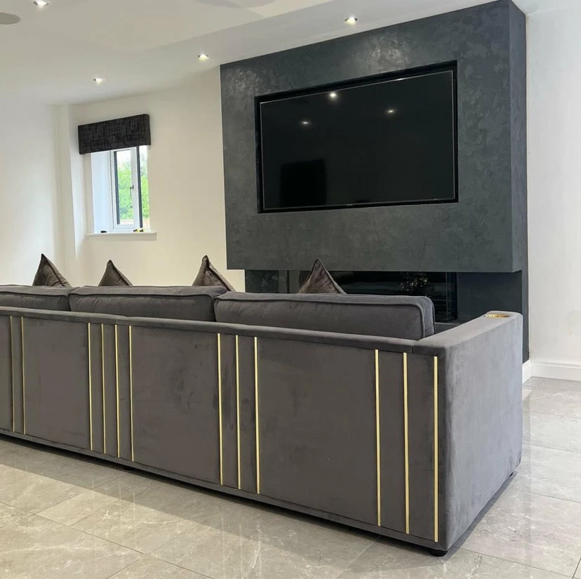 Luxury regal sofa with gold trim/ also available in silver, please contact us with your requirements