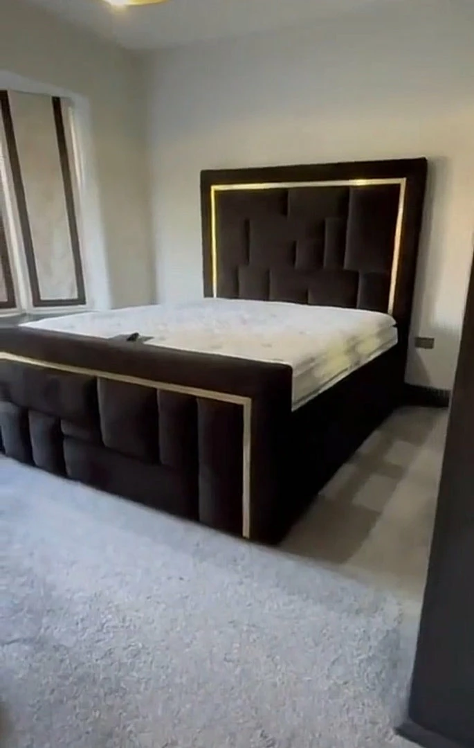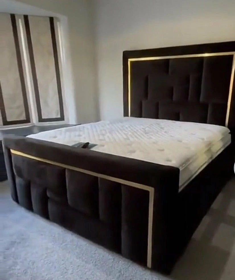 Luxury metal trim bed available in range of trim colours, with individual upholstered brick affect panelled pieces