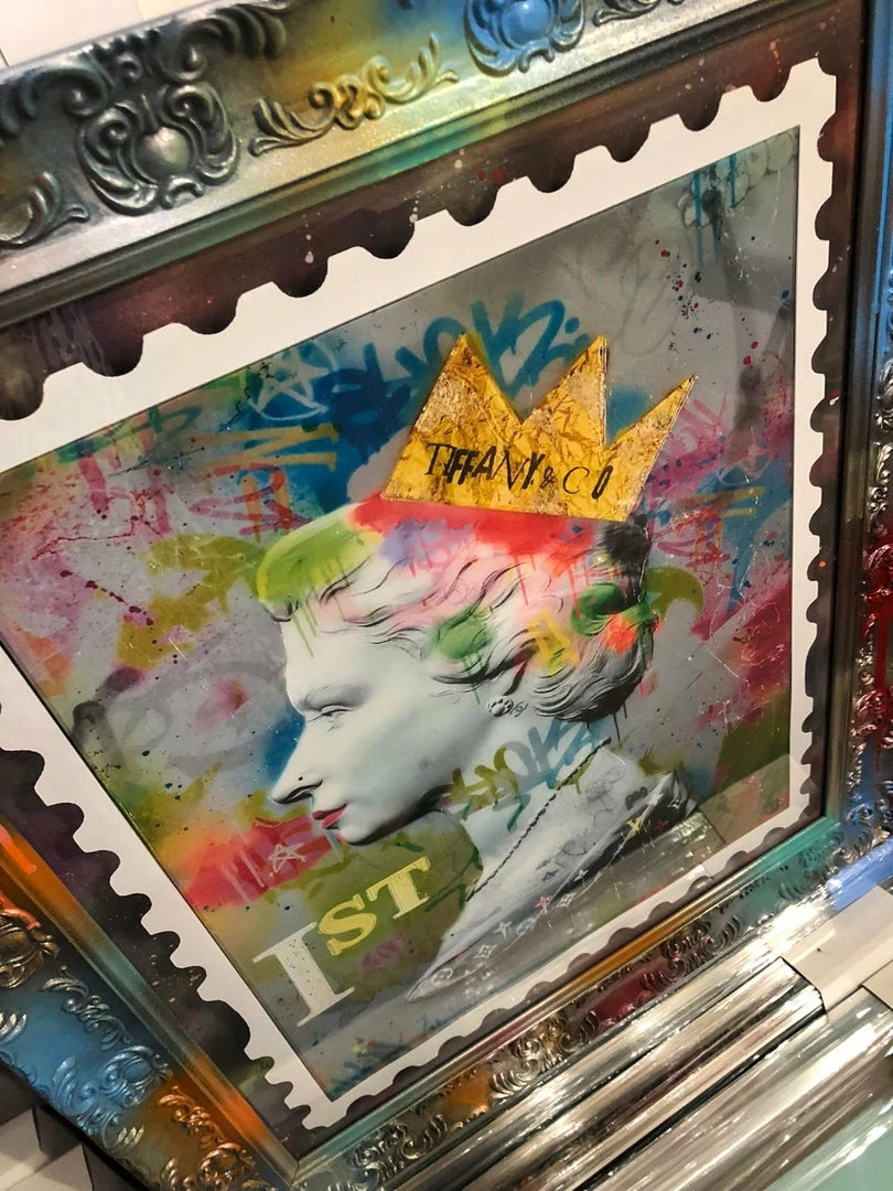 Trendy Art work, 1st class stamp finished in blsck or gold step frame