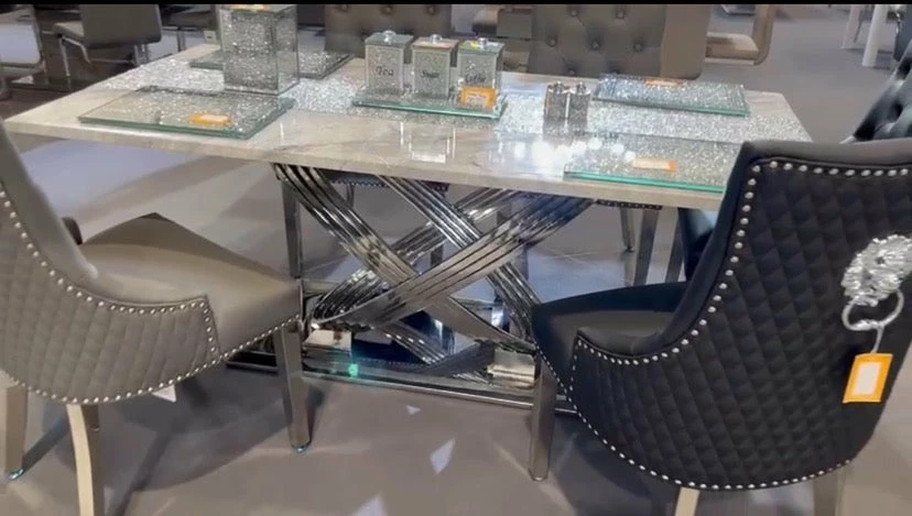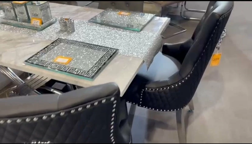 | Style | Dining table only, Dining table and 4 grey leather chairs, Dining table and 6 grey leather chairs, Dining table and 4 black leather chairs, Dining table and 6 black leather chairs |